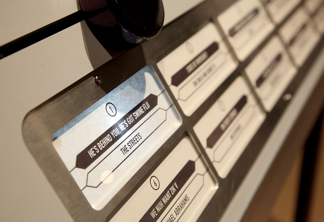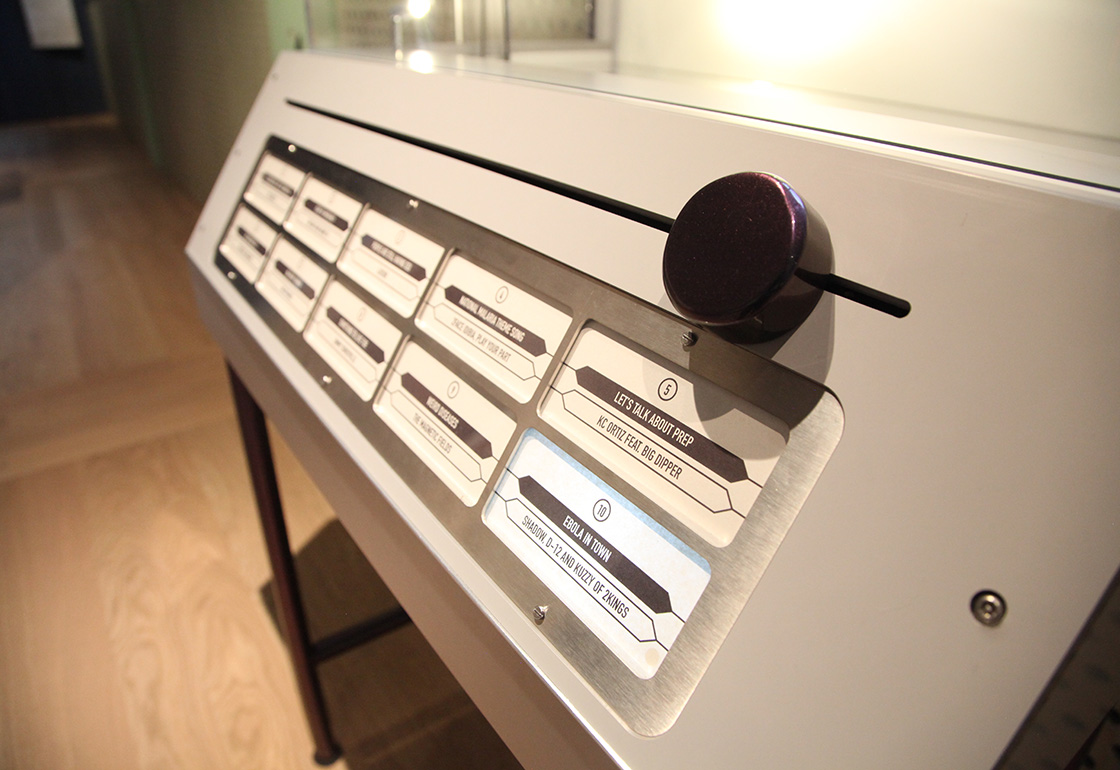 Being Human is the new permanent gallery at The Wellcome Collection, which explores what it means to be human in the 21st Century, featuring over 50 artworks and objects. We were commissioned to create an interactive jukebox featuring the work of designer Bethan Laura-Wood in collaboration with glass artisan Pietro Viero. The jukebox plays a collection of songs from across the world that relate to epidemics, from AIDs to Ebola. Some were part of campaigns sponsored by governments or health agencies, while others were more spontaneous creative responses.
