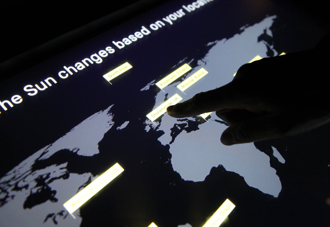 We were asked to create a key interactive for the Science Museum’s blockbuster exhibition, The Sun – Living With Our Star. The exhibit needed to show visitors how the Sun’s movements varied depending on where in the world they were located and at what time of year.