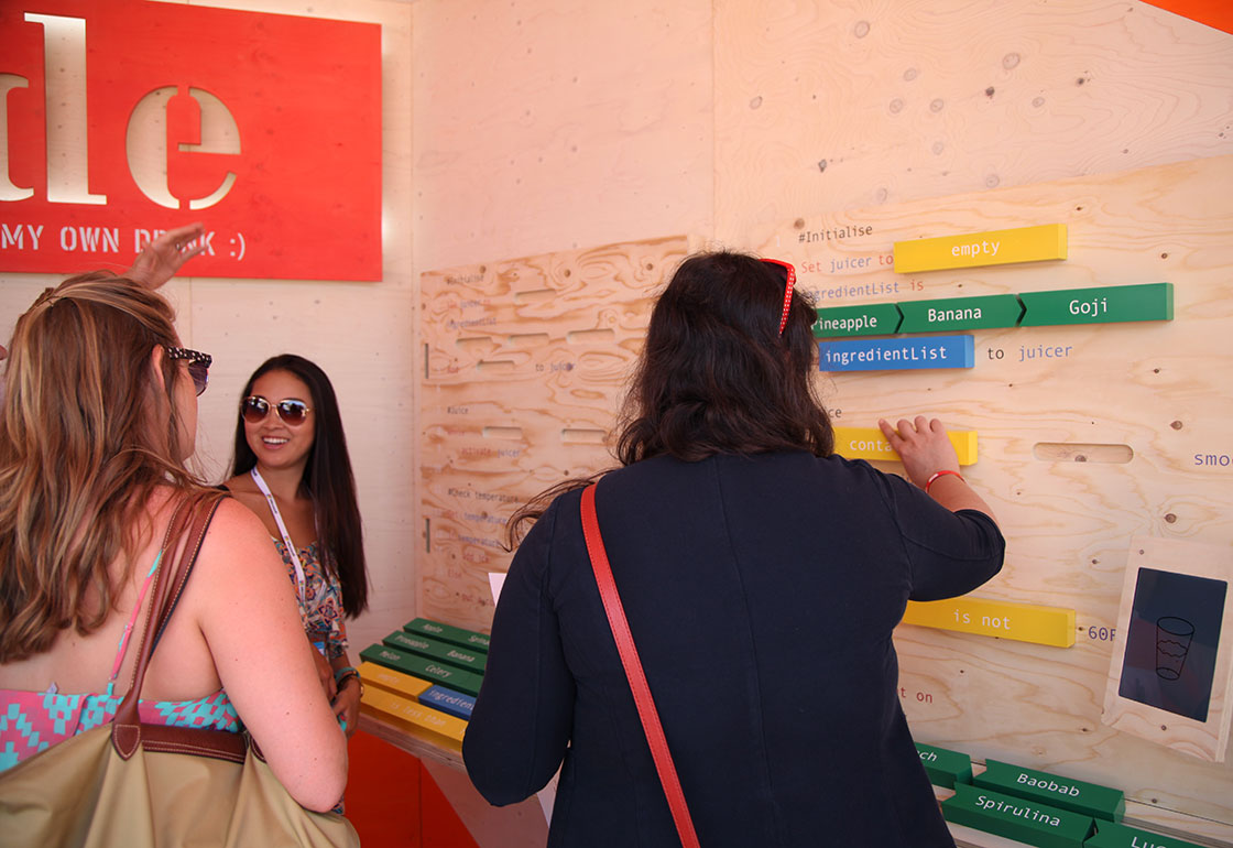 Briefed by agency Flying Object, we were asked to design and build an interactive game that would teach visitors to the Google Beach at Cannes Lions how to code. Correct code results in a free juice from the bar.